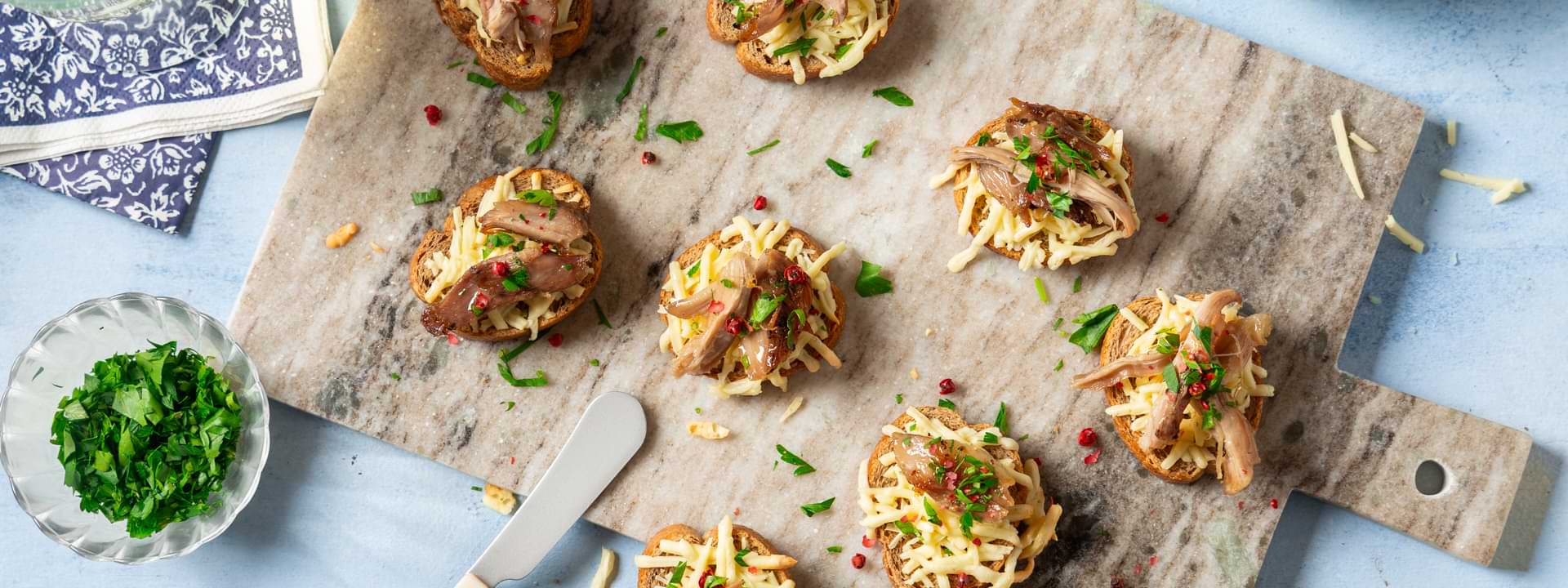 Header Image Μπρουσκέτες με γύρο αρνιού και Κεφαλοτύρι light